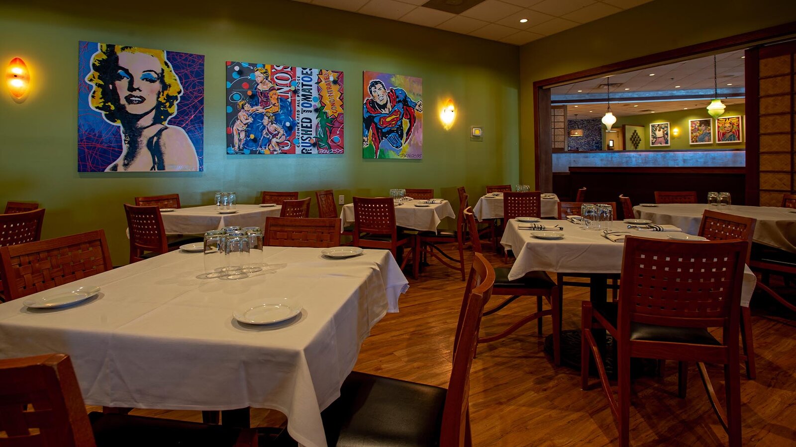 Host your next private event in the elegant Marilyn Room, perfect for gatherings of up to 30 guests. This private space offers a cozy yet sophisticated setting, ideal for celebrations, meetings, or intimate dinners. Equipped with a convenient projector screen, it’s perfect for presentations, slideshows, or entertainment.